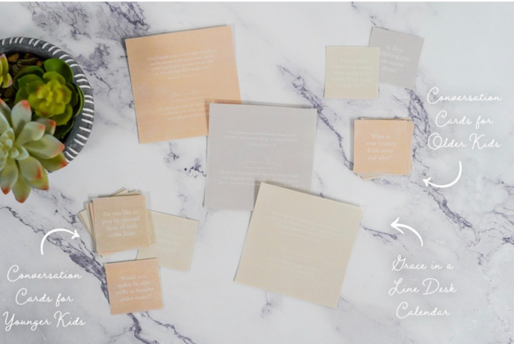3. “Grace in a Line” desk calendar. Flip through these cards each day of the month to have a daily reminder of how God’s grace meets you in motherhood today and every day.